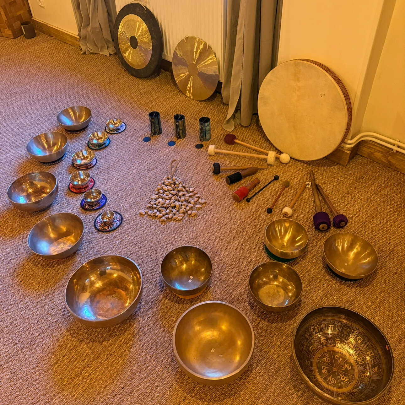 Dans un espace doux et sécurisant, laissez-vous envelopper par les vibrations des bols tibétains, des gongs, des bols de cristal, tambours, carillons et autres instruments intuitifs .